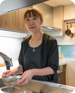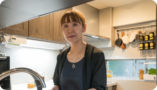 担当の渡辺さんには「作業しやすいキッチン」をつくるために、本当にいろいろサポートしてもらいました。ショールームに同行いただき、プロの視点と料理する人の視点の両方からきめ細かいアドバイスをしてくださったり、キッチン家電や調理器具、食器類の量と種類をすべて確認してもらい、「どこに収納するのが合理的か」を一緒に考えてくださったり。おかげさまで、わたしにとって作業しやすい、わたしの理想のキッチンを実現できました。