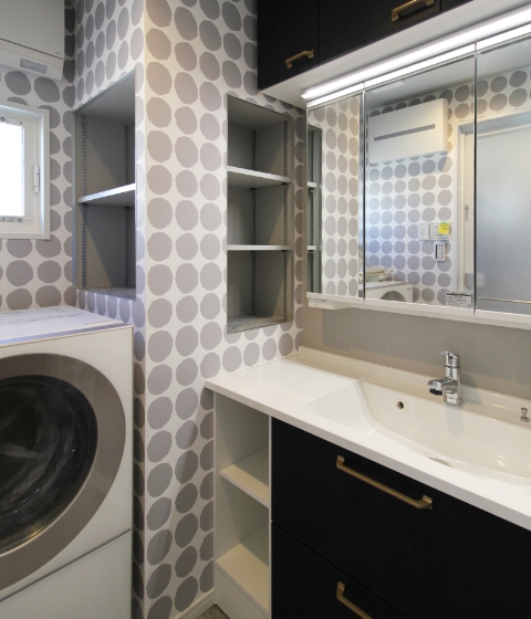 エントランス、キッチン、トイレなどのタイル、リビングや洗面所の壁紙は、すべて施主様が楽しみながらチョイス。施主様にとって本当にお気に入りの空間を作っていただくために、納得いくまで検討していただきました。