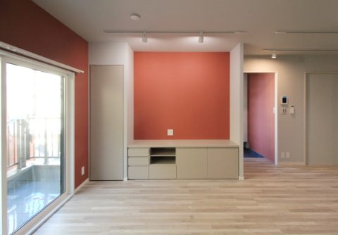 ▷和室の収納部分だったところをTV・オーディオのコーナーに。
