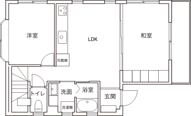 ▷光を取り込めるベランダが和室側にあり、リビングダイニングは自然な光が届きにくい、薄暗い空間になっていました。