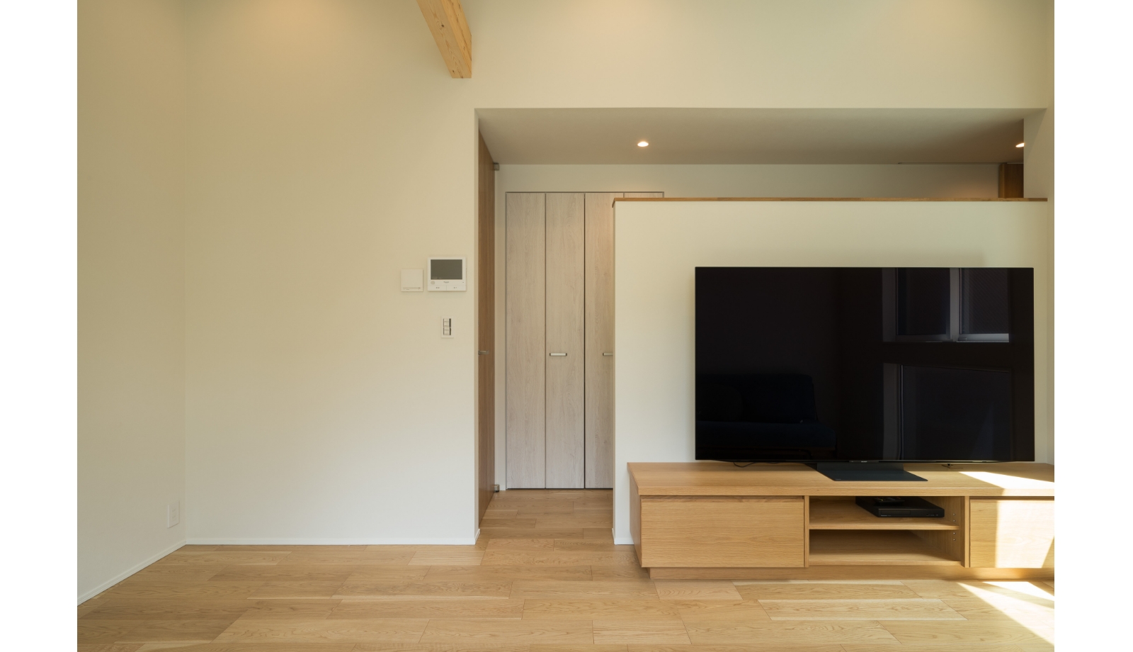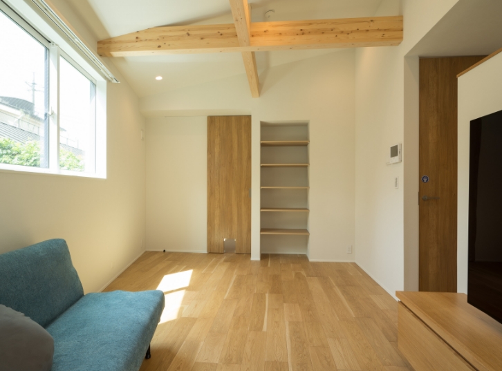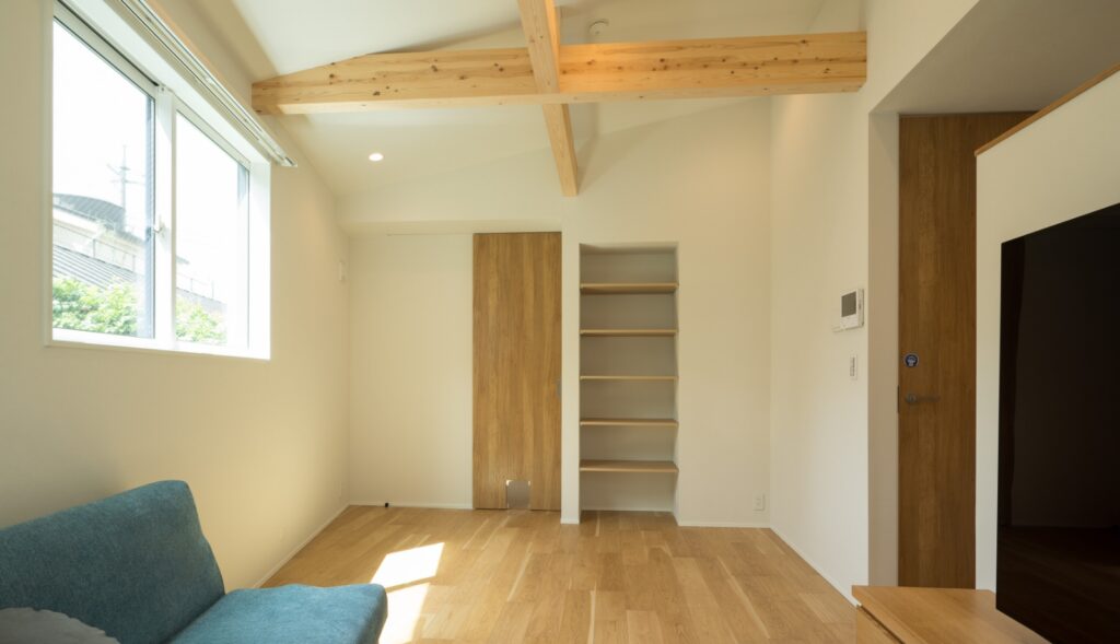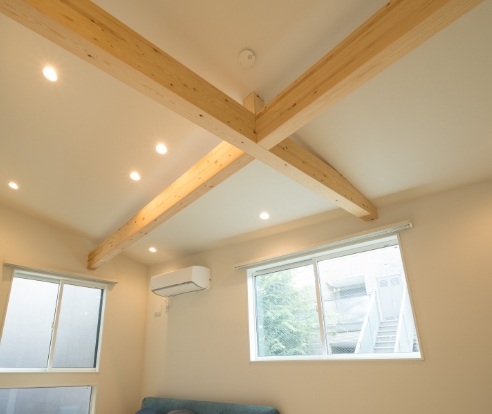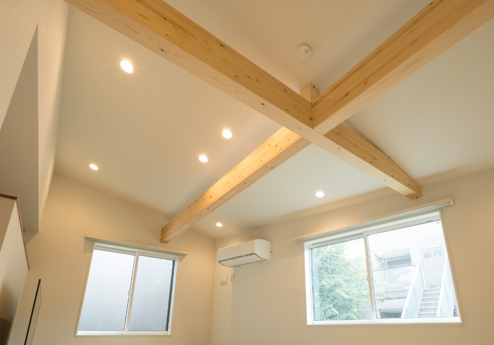 化粧梁がアクセント。空間に高さや奥行を感じさせる効果も。