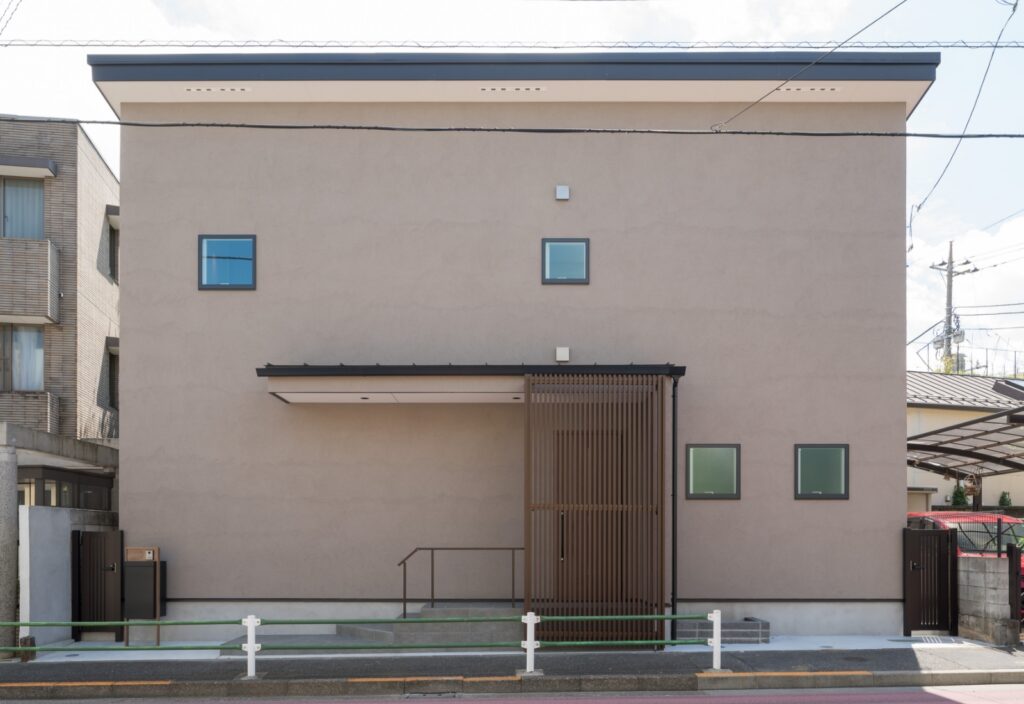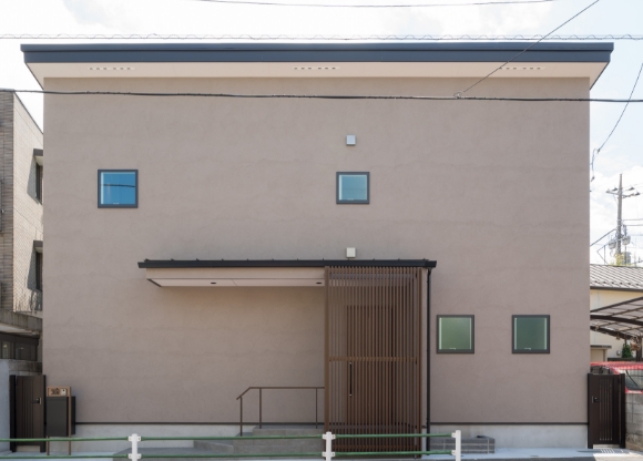 外壁は塗り壁。自然な風合いと温かみのある雰囲気が魅力の「土塗り」で、調湿性や断熱性、防火性、防音性、脱臭作用に優れています。