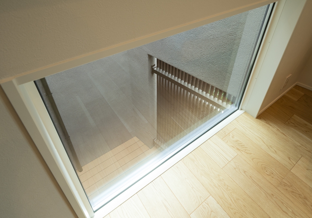 室内窓の下部ははめ殺しのガラス窓。視野が広がり、開放感を演出。緑を育む予定のインナーテラスも2階から楽しめます。