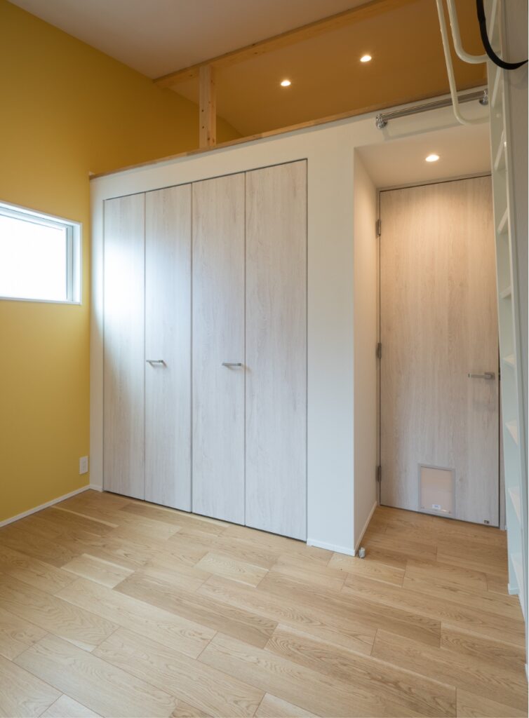 寝室にはたっぷりの収納とロフトを設置。