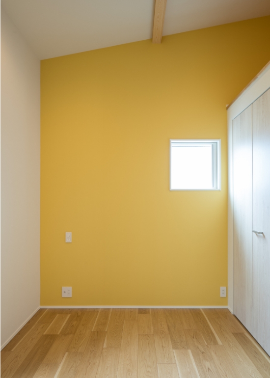壁面の一部を明るいカラーのアクセントウォールに。