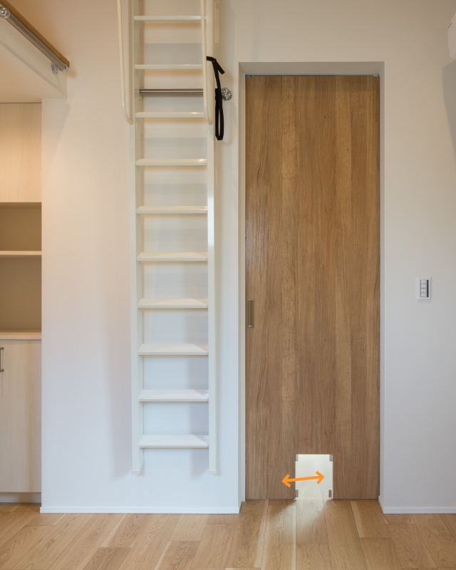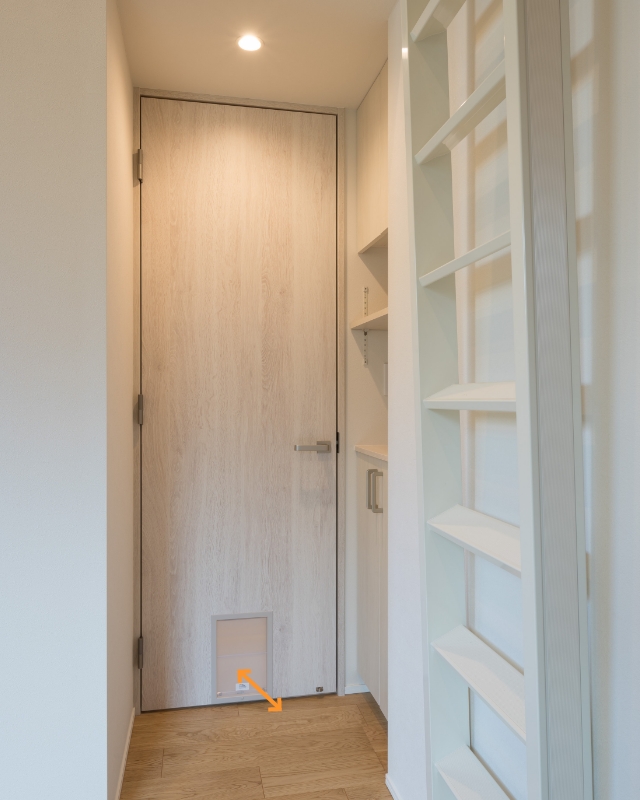 リビングと寝室の扉の下部にペット用の通路を設置。